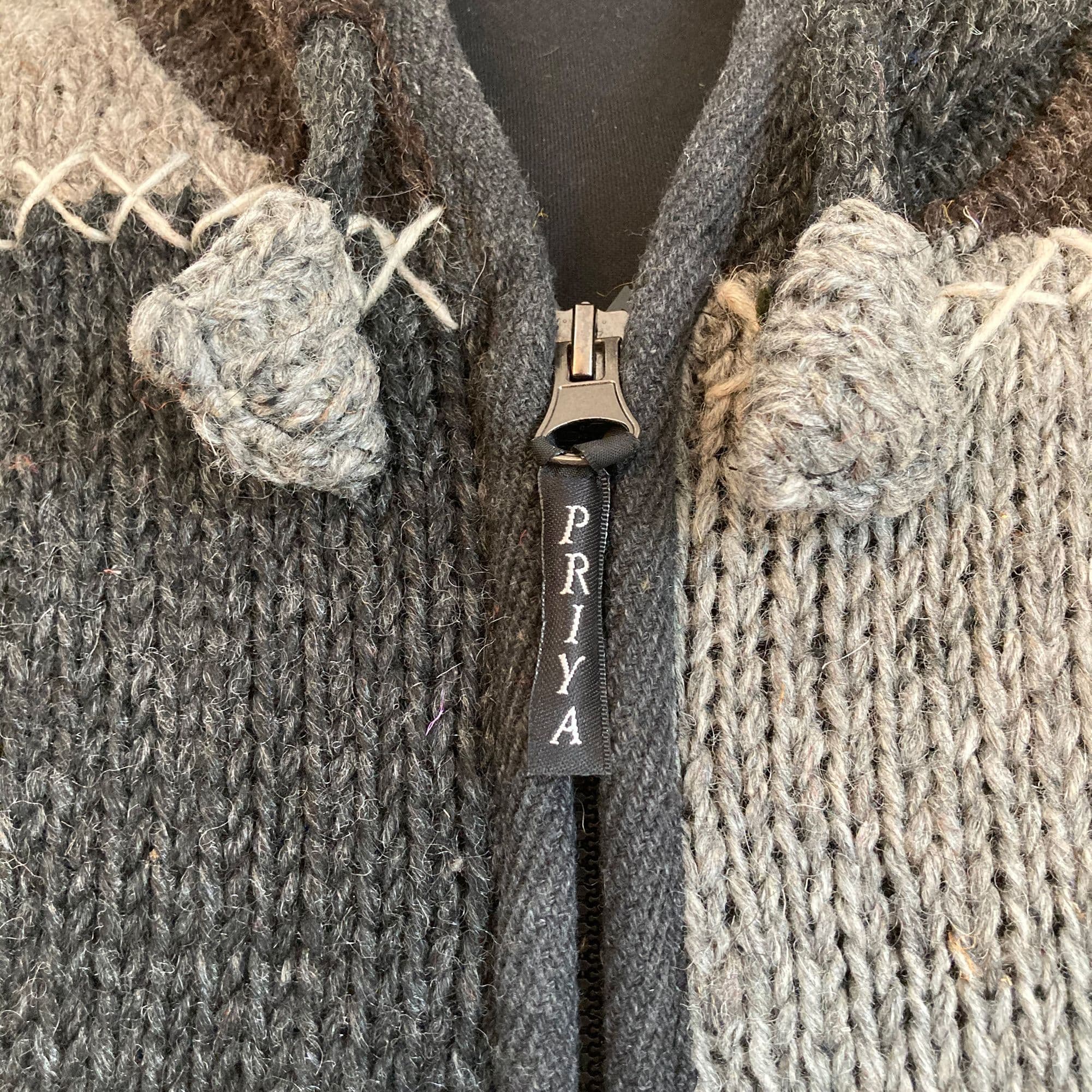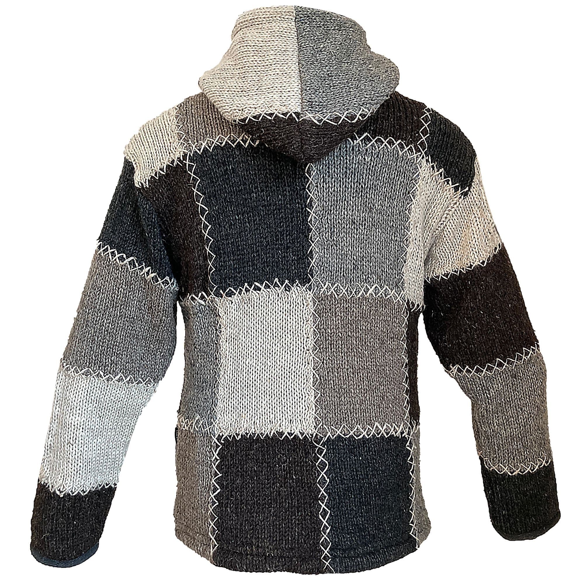 Woollen Patchwork Jacket in Grey, Black & White
